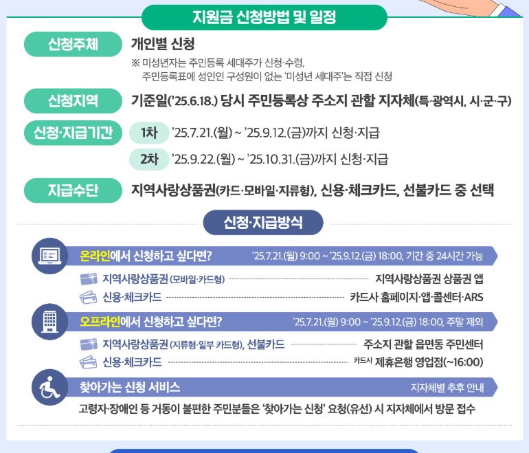 - 신청 및 지급기간: 2025년 7월 21일(월) 오전 9시부터 9월 12일(금) 오후 6시까지