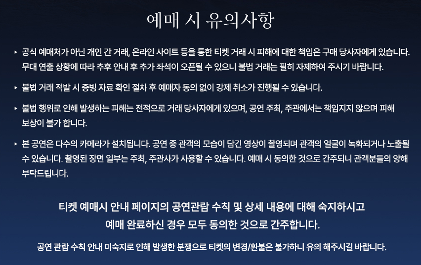 ※ 교통지연으로 인한 공연 관람 실패 시 환불/변경 불가