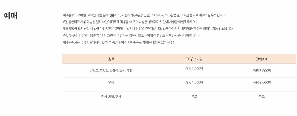 - 휠체어석은 전화 예매 필수, 간이의자 제공