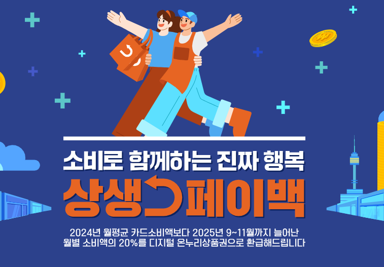 상생페이백은 2024년 카드 월평균 소비액 대비 2025년 9~11월 소비 증가분의 20%를 디지털 온누리상품권으로 환급해주는 정부 지원 정책입니다.