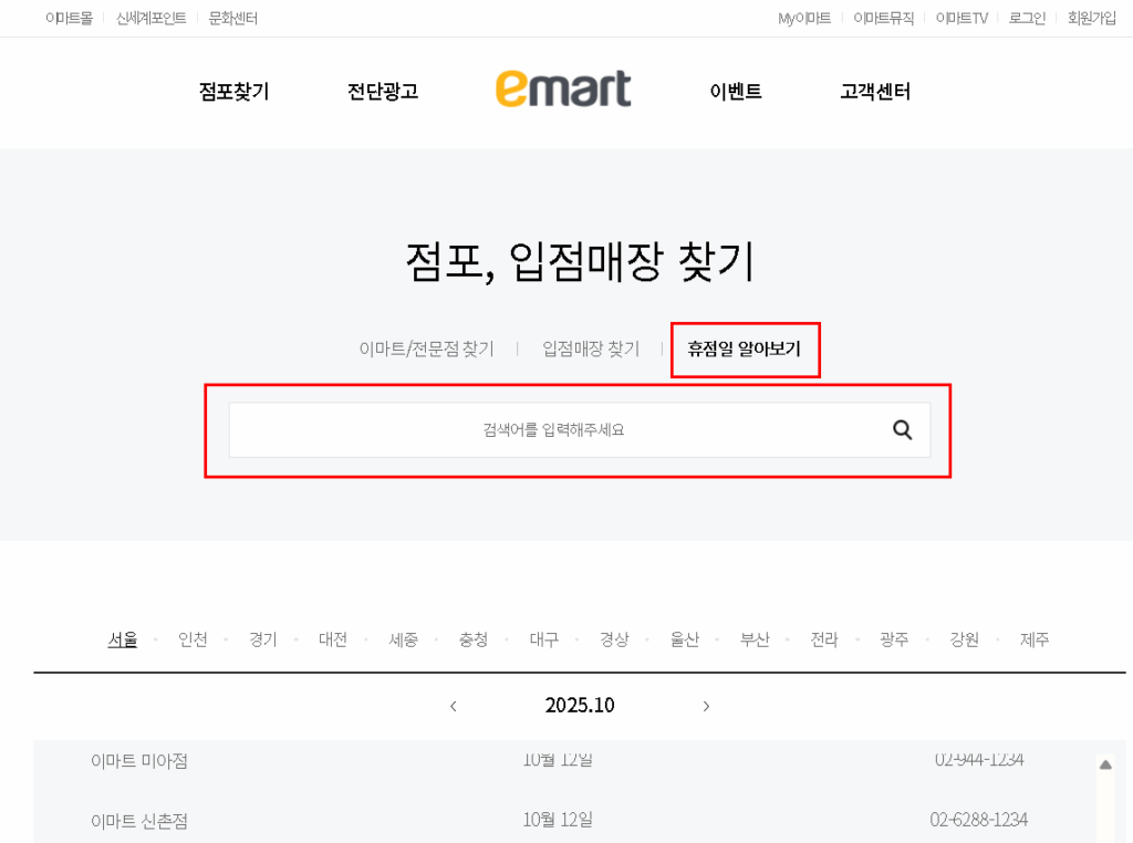 2025 추석연휴 기간 지역별 이마트 휴점일 휴무일 총정리